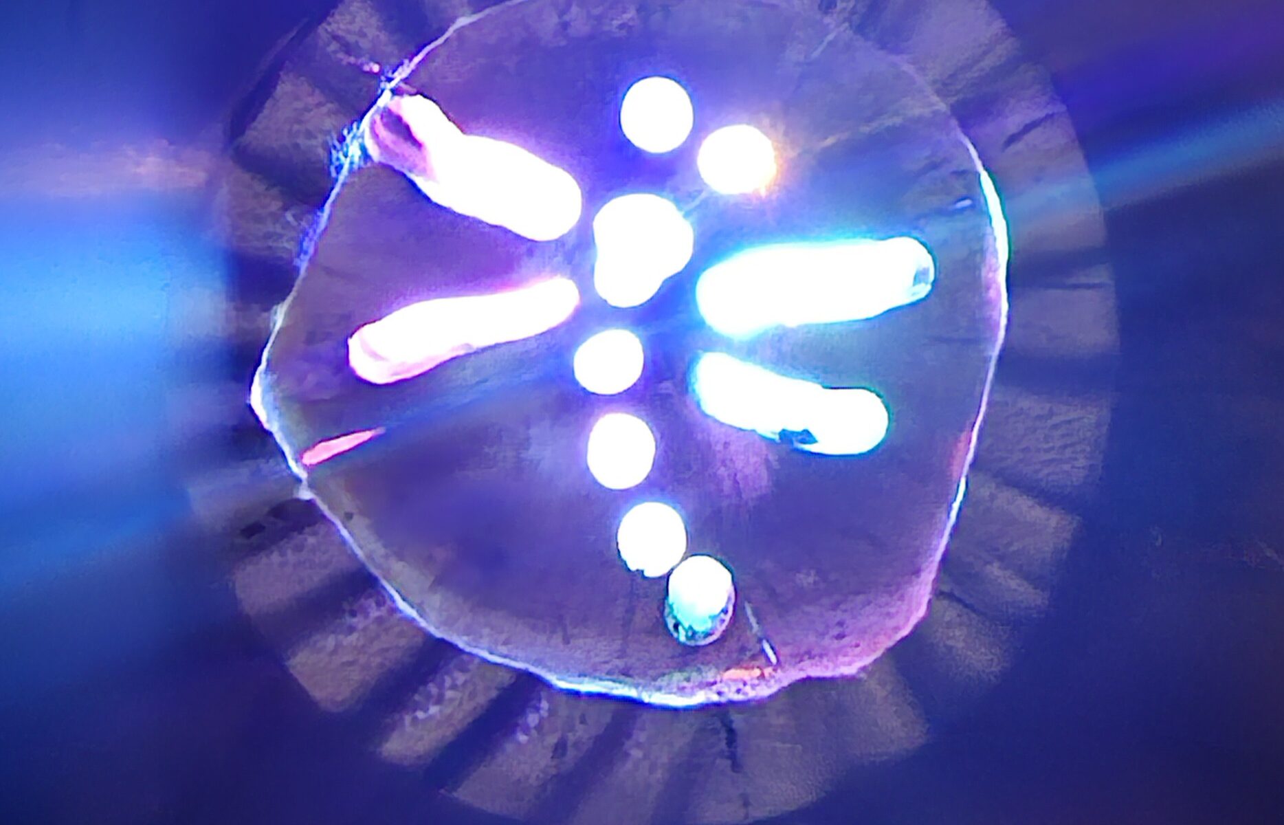 This particular piece is lit up with multicolor but as always can be ordered from us with your choice of blue, green, soft or bright white, or red.